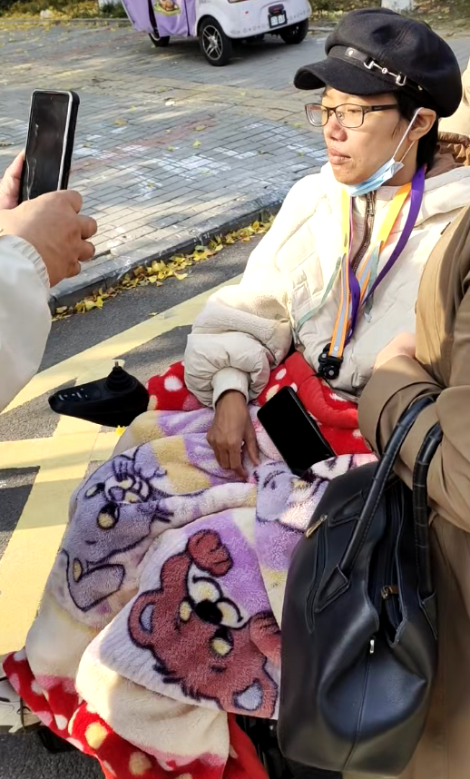 11月3日,法院外,杨宁宁坐在轮椅上